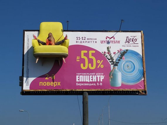 У Києві біля траси помітили білборд зі справжнім кріслом і людиною.