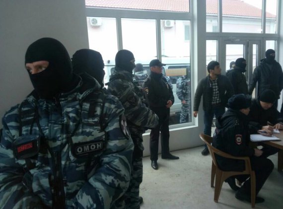 За словами очевидців, поліція, співробітники російського ОМОНу з автозаками прибули нібито на виклик про "збори зі зброєю" близько 15:00. Вимагали від учасників пред'явити паспорти, погрожували "помістити усіх в автозаки та відвезти до поліції".