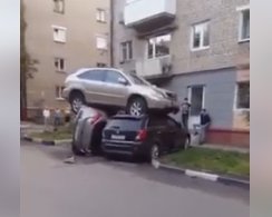На відео японський позашляховик від зіткнення опинився на даху автомобіля.