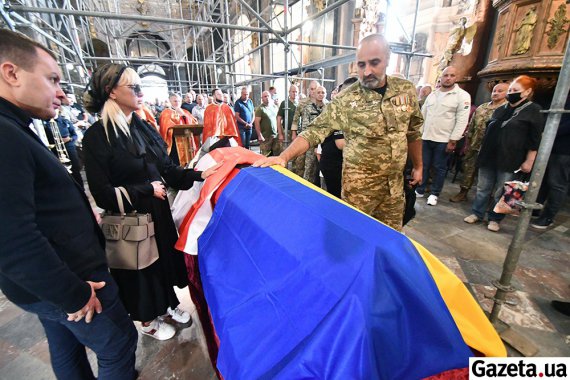 Попрощатися з воїном прийшли рідні та батько Ігор "Обух" Ткачук, що воював пліч-о-пліч з сином. Також члени УНСО, ветерани АТО/ООС, волонтери, духовенство, представники місцевої влади, почесний консул Грузії у Львові Ярослав Музичко та голова виконкому Національного комітету реформ, екс-президент Грузії Міхеіл Саакашвілі.