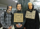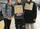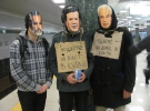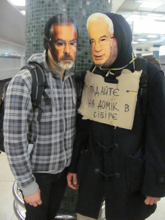 У суботу ввечері група молодих людей у масках, схожих на президента Януковича, прем'єра Азарова і міністра культури Табачника заходить у вагон київського метро. "Президент" тримає пластиковий стаканчик, куди просить кидати гроші. На грудях почеплена табличка "Подайте на билет в Китай". У "Азарова" табличка з написом - "Підайтє на домік в Сібірє".