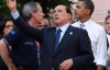 Причому, Каддфі, судячи з усього, не дуже зрадів такому вираженню почуттів і непомітно витер руку об одяг.