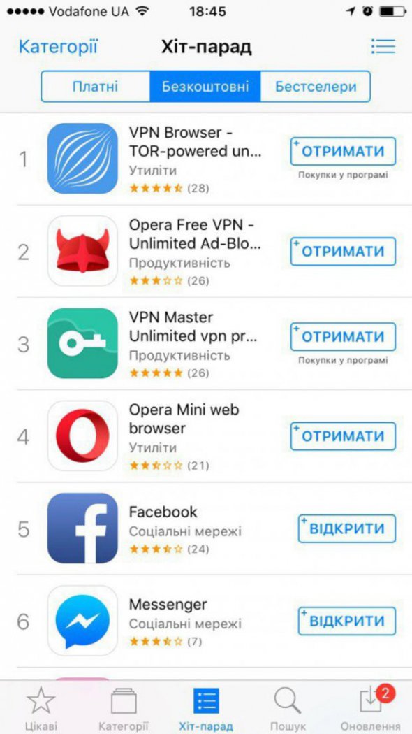 Крім того, після блокування "ВКонтакте" і "Однокласники" в топі магазину додатків "App Store" перше місце зайняла розробка для обходу блокування під назвою "TOR".