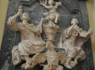 Зверху під склепінням розмальовані українські козаки, Михайло Грушевський, Петро Сагайдачний.