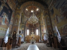 "По них у радянський час стріляли, - розповів отець Артемій, показуючи на обстріляну стелю. - З іншої сторони українських вояків просто затерли, але силуети видно. Тому реставратори навіть не відновлювали зображення. Улюблені кольори нашої церкви – вишневий, жовтий, блакитний".