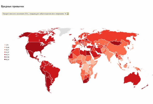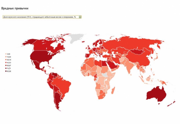 До куріння і вживання алкоголю слід додати проблеми харчування і низької фізичної активності, що провокують надмірну вагу. У світі 1,6 млрд дорослих, які страждають від зайвої ваги і ожиріння. З 1980 року їх кількість подвоїлася, а через десять років, за даними ВООЗ, зросте ще на 40%.