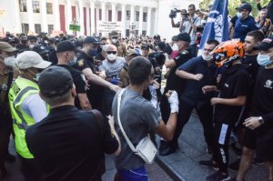 У ході сутички постраждали двоє поліцейських, шістнадцятьох осіб затримали. Про це повідомляє "Думська".