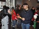 Вадим Красноокий до закладу заносить на таці гнилого кабачка, обмотаного подарунковою стрічкою, Олена Подобєд-Франківська – три білі підв'ялі хризантеми. За ними йдуть фотокореспонденти, оператор із камерою та тележурналісти.