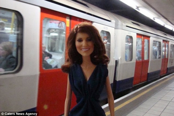 Лялька Кейт Міддлтон одягнена в синю сукню, котра нагадує її знамените вбрання, в якому вона з'явилася перед журналістами після заручин з принцом.