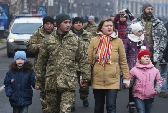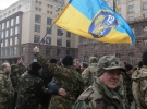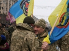 Кількасот військових взяли участь у марші в центрі Києва. Учасники акції пройшли з прапорами бойових підрозділів, які два роки тому захищали Дебальцевський плацдарм.