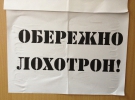 На дверях офісу хлопці наклеїли білий листок із написом "Обережно, лохотрон!".