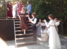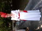 "Головна умова конкурсу – показати сукню епохи Середньовіччя. Ще треба розповісти, які жінки ходили у таких сукнях та у якій країні. Недавно я дивилася фільм "Анна Кареніна". Дуже сподобався. Сукню обрала в стилі того часу, в таких ходила героїня пушкінського роману, - каже учасниця Ольга Кузьменко, із Вінниці. – Пошила сукню сама за кілька днів. Використала білу парашутну тканину, вона проста і гарна на вигляд, ще добре тримає форму. Манжети та комірець прикрасила мереживом. Доповнюють образ червоні капелюшок, пояс та рукавички".