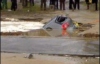 Дорожнє покриття несподівано не витримало вагу "джипа" і праве переднє колесо опинилося під асфальтом, внаслідок чого машина залишилася лежати на бампері.