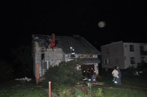 Вертикальний повітряний стовб зірвав кілька дахів поблизу міста Рава Мазовецька. Ушкоджено лінії електропередачі. На щастя, ніхто не постраждав.