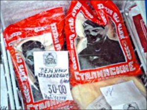 На російських прилавках з"явилися пельмені "Сталінські ніжні". Рекламний слоган продукту повідомляє: "Жити стало краще, жити стало веселіше". Продукцію під такою оригінальною назвою, як зазначено на яскраво-червоній упаковці, випускає об"єднання "Айсберг" з селища Ужовка Ніжегородської області. Цікаво, що один з девізів підприємства – "Вірність кращим традиціям". Але в прайс-листі компанії "Сталінські" пельмені, проте, не фігурують – є лише "Ніжні".
