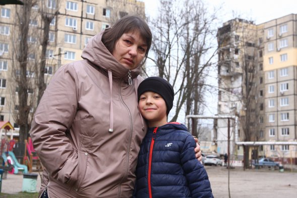 – Останній підʼїзд, тут живуть діти, – показує рукою. – Десь о третій годині чоловік з невісткою пішли в магазин, а я з сином і онуком готували святкову вечерю. І раптом вибух – страшний, але ми один чули. Я більше злякалася того, що онук це почув. Він дуже злякався. Невістка почула в магазині і коли побачила, що з нашого району йде дим. Уявіть, вона біжить і не знає, чи побачить нас.