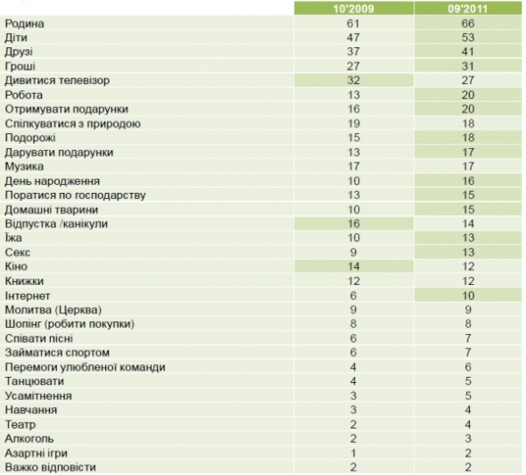 "Найбільше радості мешканцям України приносять особисті цінності: родина, діти та друзі. Це підтверджує, що українцям стало важче жити. Причина - невпевненість у завтрашньому дні, нестабільність в державі, погане матеріальне становище. Коли виникають труднощі, ми всі йдемо до родини, дітей і друзів", - сказав він.
