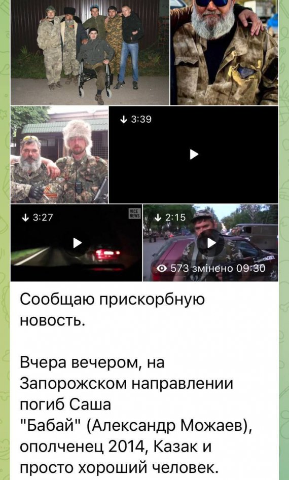 Про знищення бойовика заявив у Telegram один із так званих "воєнкорів" Єгор Гузенко. Він стверджує, що Можаєва, який з 2014 року воював проти України на боці РФ, ліквідували на Запорізькому напрямку в середу ввечері, 18 жовтня. Підтверджень цих даних з офіційних джерел немає.
