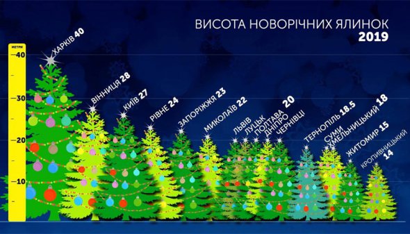 Друге місце посіла Вінниця. Висота ялинки там становить 28 метрів.