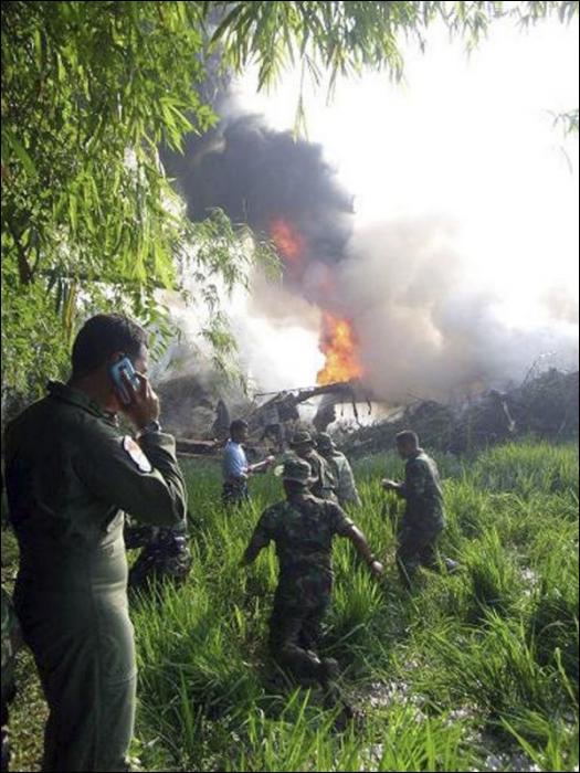 За першими даними, катастрофа відбулася при посадці на військовій базі "Ісвахуді". Літак, на борту якого перебувало 112 чоловік, не дотяг до злітно-посадочної смуги і звалився на будинки одного з сіл за 4 км. від бази.