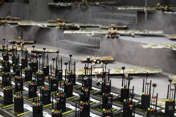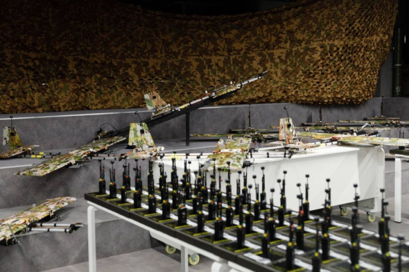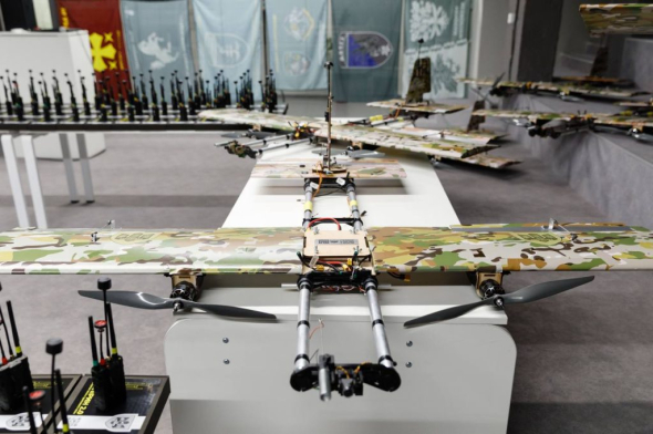 П'ятий президент Петро Порошенко передає у війська новинку - дрони-камікадзе "Блискавка" українського виробництва.