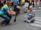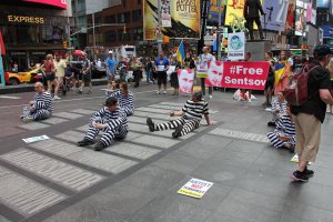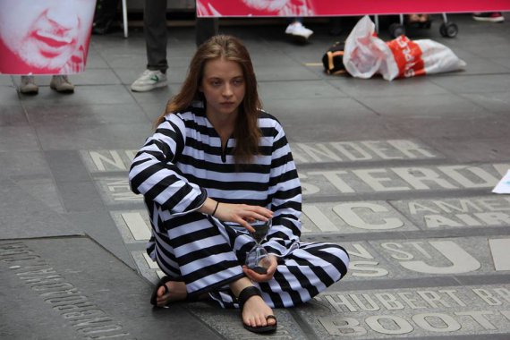 У США провели акцію на підтримку українського політичного в'язня Олега Сенцова. Активісти вбралися у в'язничну форму. Сіли посеред площі Таймс-сквер у Нью-Йорку з пісочними годинниками в руках.