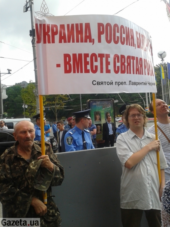 - Мы нашего Кирилла приехали посмотреть, - каже одна з них. Одягнута у довгу синю спідницю та такого ж кольору шалик. На грудях за "георгіївські" стрічки підвішана ікона. - Он же наш, родной. Не то что эти расскольники, киевские.