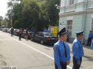 Тим часом неподалік Михайлівського собору товчуться кілька десятків паломників біля такого ж залізного паркану та кордону із правоохоронцями. Серед них кілька монахинь. Дехто з запрошеннями, але їх не впускають бо запізнились. За спинами міліціонерів — ряд автомобілів бізнес-класу та кілька автобусів із беркутівцями. Біля деяких машин нудьгують шофери.