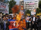 Між тим, в Сеулі проходять акції протесту проти запуску ракети КНДР. Учасники акції палять макети ракети, прапори КНДР та портрети північнокорейського лідера Кім Чен Іра.