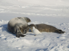 Тюленя SeaBaby разом із мамою перебралося на нове місце для відпочинку. Тепер тварини вилежуються на кризі у протоці між островом Вінтер, на якому народилося маля, та островом Галіндез, де розташований "Академік Вернадський", інформують полярники.