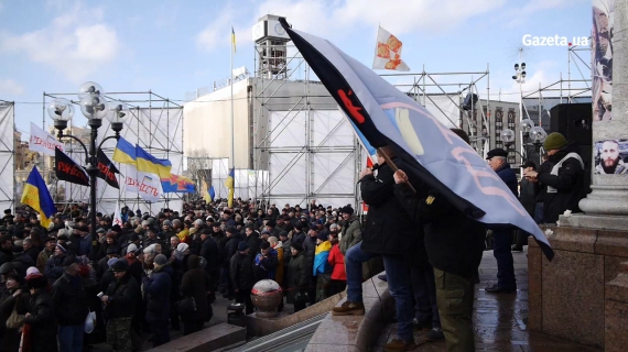 В цей час від них відколюється частина мітингувальників. Йдуть до офісу "Київенерго" та холдингу СКМ олігарха Ріната Ахметова. Кидають петарди в будівлю. За годину повертаються назад.