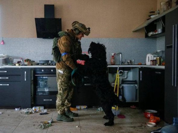 Також мережу замилувало фото довгоочікуваної зустрічі патрульного роти ТОР Володимира Сімонова з його собакою. З міркувань безпеки пес зараз живе із сусідами в бомбосховищі.