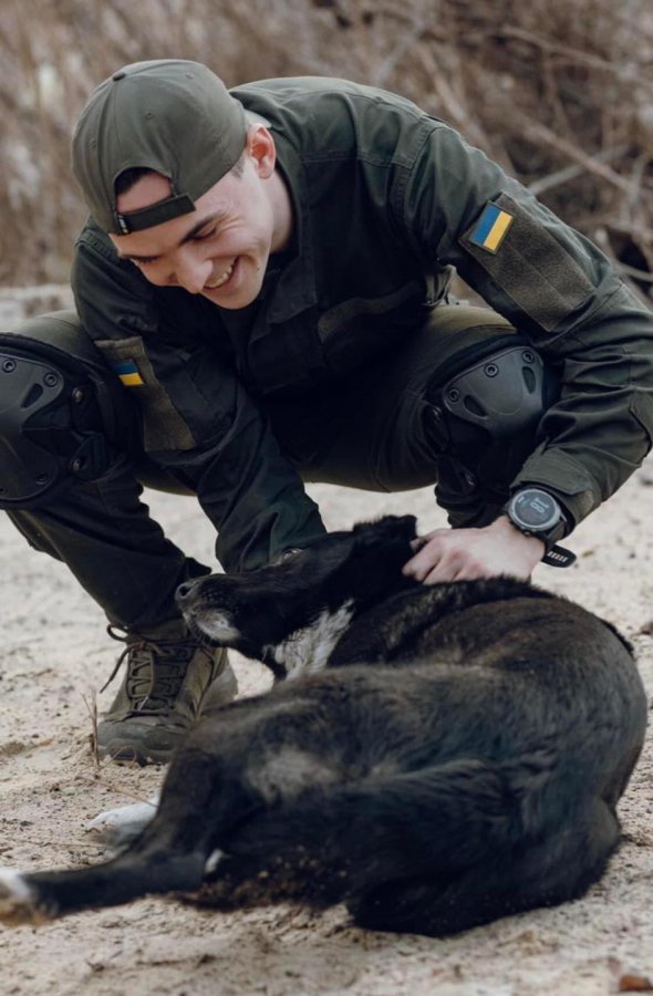 Мережею поширювали фото українського захисника й собаки, який залишився біля Києва без господарів.