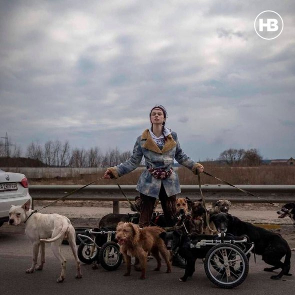 Також у мережі стало вірусним фото, на якому дівчина рятувала собак з інвалідністю з Ірпеня, який захопили окупанти.