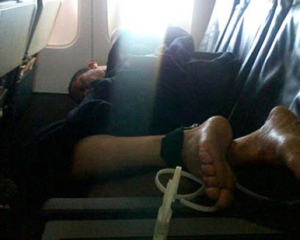 Нетверезий росіянин, який повертався з України після відпочинку, намагався під час польоту покинути літак, сплутавши його з автобусом. Після посадки зловмисник "на прощання" серйозно травмував пляшкою бортпровідника.