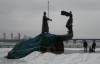Обидва брати лежать в сніговому заметі в кутку двору. В одного відламана права нога. Другого привезли з чималим шматком човна на чоботях. Металева арматура, якою скульптури були прикріплені до човна, проіржавілі наскрізь.