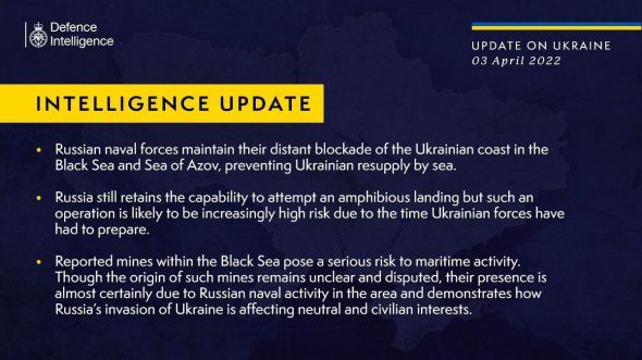 Росія може висадити морський десант, але ця операція для неї дуже ризикована через готовність України до такого розвитку подій, повідомила британська розвідка. Її дані на власній сторінці у Twiiter виклало Міністерство оборони Великої Британії.