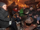 "Ми для сугрева, холодно трохи. Шашлик готуємо на весь намет, а нас тут аж 10 людей ночує, - зніяково говорить 34-річний Степан Трошків з Ходорова, що на Львівщини. - Надіюсь у наступному році Яник таки піде і ми поїдемо додому. Ви не думайте, я готовий тут залишатись до перемоги, просто наша власть вже надоїла всім".