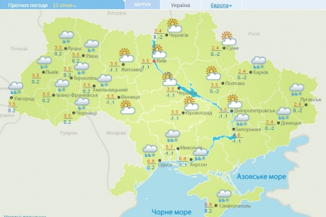 У Києві 12 січня - невеликий мокрий сніг. На дорогах ожеледиця. Вітер південно-західний, 7-12 м/с, місцями пориви 15-18 м/с. Температура вночі 0-2° морозу, вдень 1-3° тепла.
