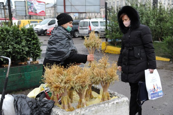 Жінка продає дідухи на ялинковому ринку біля Привокзального ринку, у Львові, 23 грудня 2020 року.