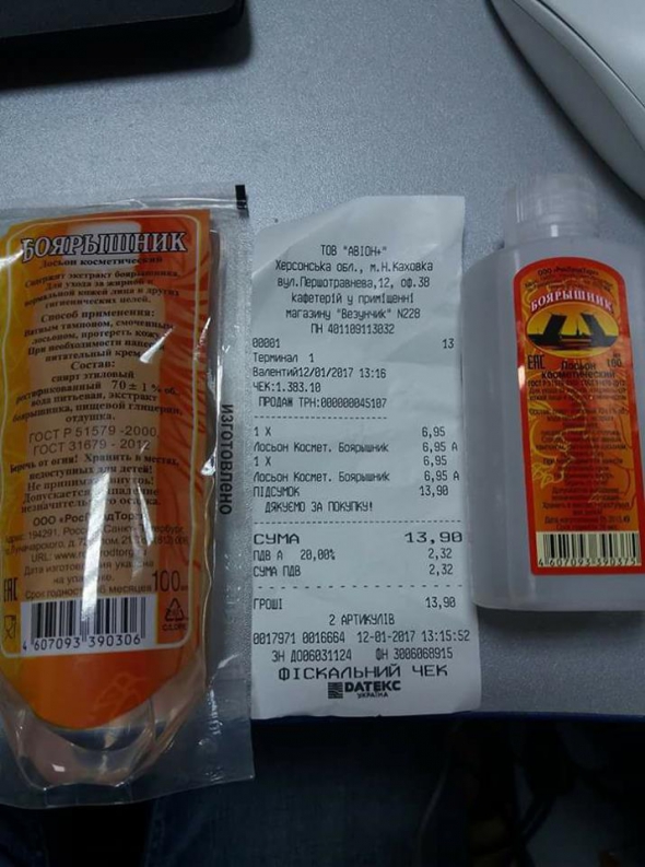 У Херсонській області почали продавати косметичний засіб "Боярышник", завезений із Росії.