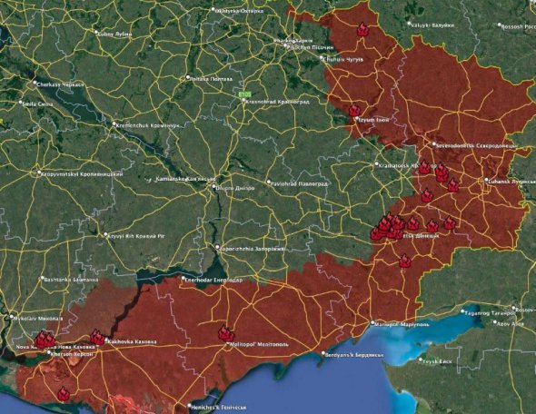 У Telegram-каналі "Американський піхотинець" опублікували карта знищених російських складів з боєприпасами. За два тижні близько 30 складів знищили.