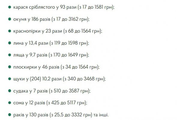 Відтепер за незаконний вилов раків треба буде заплатити в 130 разів більше, ніж було досі, за карася сріблястого - у 93 рази більше, а за окуня - у 186 разів.