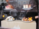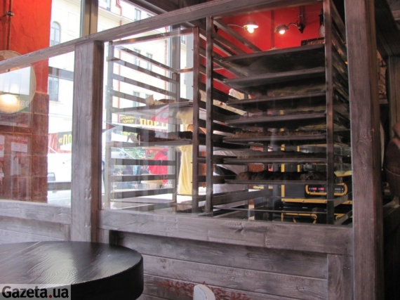 "Менюшки трохи неправильні, їх нам зі Львова завезли, - каже Микола Зінькевич. - Насправді у нас шість видів штруделів: яблучні, вишневі, з маком, з лососем і два види з куркою. Сирники із маком та родзинками. Усе по 27 гривень. Ціна на 4 гривні вища, ніж у Львові. У Києві інгредієнти дорожчі".