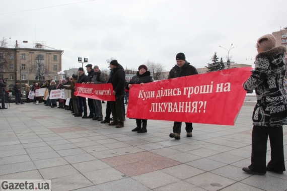 "Правильний діаліз коштує 1118 гривень, але владі це дорого, в обласній коштує 812 гривень. Німці вже погодилися й на таку ціну, але й після цього не платять. Кожного року змушують пікетувати, сволочі, - говорить Коломієць — У мене знайома лікувалася в обласній. Півроку пробула, через два місяці почала з паличкою ходити, і вже три місяці лежить у могилі. Люди звідти хочуть у "Фрезеніус", а їх не пускають. Кажемо, щоб виходили з нами на акції, а вони бояться, зомбовані страхом".
