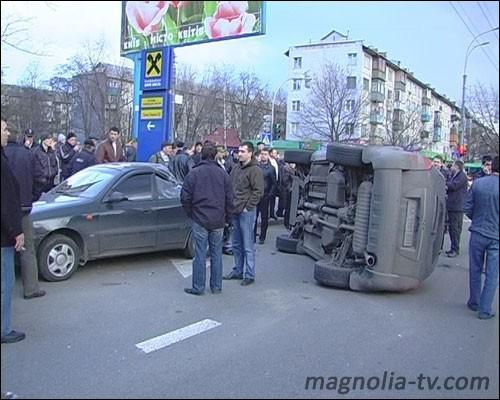 "Lanos", у свою чергу, вдарив "Volkswagen", що стояв попереду. А той, за інерцією, стукнув "ВАЗ". При всій серйозності події, ніхто з людей не постраждав.
