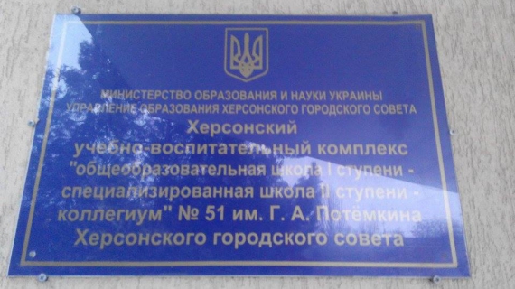 "Такого плану в місті 12 шкіл, - продовжує Дмитро Семен. – Там фактично насаджуються ідеї "Русского мира". І ми потім дивуємося, звідки у нас на Півдні і Сході стільки проросійськи настроєних людей, якщо за кошти державного бюджету самі виховуємо їх. Уся наочна агітація в школі – російська. Герби дому Романових, Потьомкіна, портрети Катерини ІІ, у кабінеті директора – портрет полководця Суворова. Натомість жодної української державної символіки нема. Лише після нашого візиту вона з'явилася".
