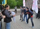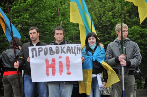 "Цю акцію ми проводимо самостійно. Самі студенти зібралися і вирішили інсценізувати 9 травня. Ми не хочемо, щоб до нас привозили червоний прапор, ми не хочемо, щоб нам нав'язували своїх героїв та ідеали. Також ми не хочемо, щоб 9 травня була спровокована бійка. Наразі вимагаємо, щоб суд заборонив їх приїзд. Якщо вони нас не провокуватимуть, то все буде мирно. Але їх приїзд сюди точно спровокує бійку, - сказав студен Лещук Любомир.