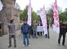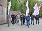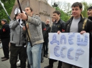 "Ми приїхали сюди, щоб тут теж зрозуміли усю велич перемоги. Ми її здобули під червоним прапором. Саме це наш прапор під яким ми повинні йти", - кричав у мегафон російською один із учасників акції.