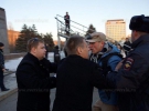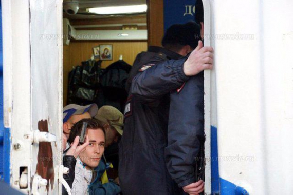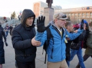 Спочатку правоохоронці не робили спроб затримати молодих людей зі стрічками, проте відразу після закінчення мітингу силою доставили їх в стаціонарний відділ поліції на Театральній площі.